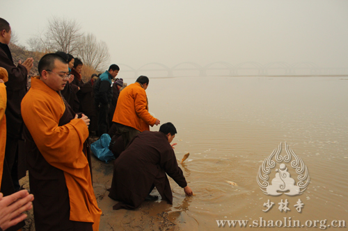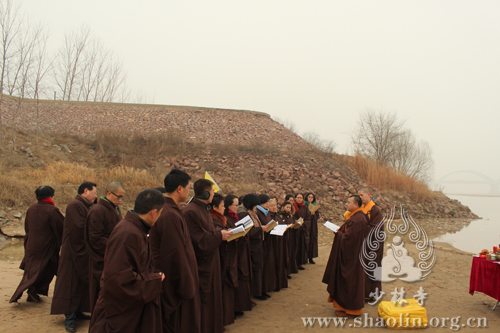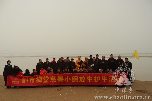 【本网讯】2014年3月1日,农历二月初一,少林寺都市禅堂慈善小组发起放生祈福活动。热心慈善公益事业、经常参加禅堂义工活动的居士们积极响应,30余人一行到郑州市惠济区花园路口黄河岸进行放生活动。