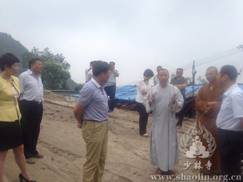 延沛法师向于清副县长一行介绍盘山北少林寺建设进展情况