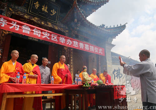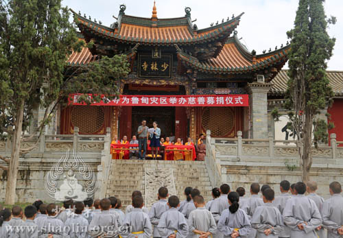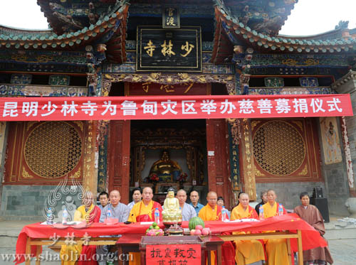 云南昆明少林寺为鲁甸地震灾区祈福、募捐现场
