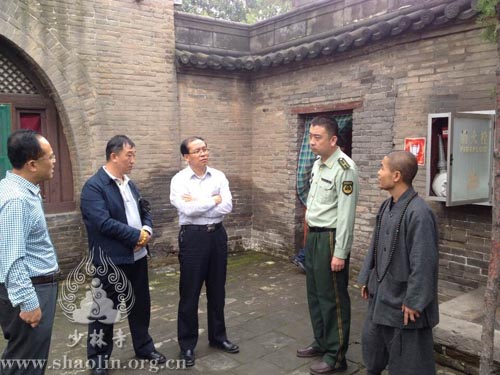 【本网讯】2014年9月29日下午,山西省晋中市灵石县县委常委、宣传部长王世强,县宗教局长裴春生,县文物局长宋春旺,以及消防总队负责人一行,考察山西灵石县资寿寺,并对资寿寺的建设工作及未来的发展给予指导,受到延邦法师的热情接待。