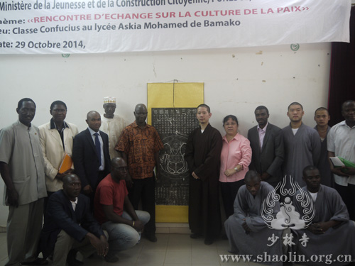 10月29日,少林文化代表团访问了位于马里首都巴马科的孔子学院,进行和平文化交流。联合国教科文组织代表,马里青年部代表,中国驻马里使馆高彦德秘书,孔子学院西索科院长及中方院长,孔子学院高中学生等200余人参加了会议。延宗法师代表少林文化代表团向孔子学院赠送《混元三教九流图赞》拓片,并为大众讲说“三教一体,九流一源,百家一理,万法一门”的深彻含义,鼓励在场的学生要立志,成为一个对国家社会有用的人,并且一一回答了提问者的问题。随后延惪、延科、延迪等法师演示少林功夫,赢得现场阵阵掌声!