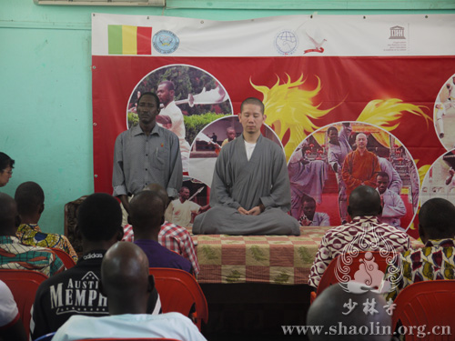 11月1日与6日上午,少林文化代表团在马里首都巴马科青年文化宫(Maison des Jeunes)为200多名武术爱好者讲授“禅修的基本方法”,讲述了《吉祥经》点明佛教的幸福观,并解答少林文化爱好者的问题。