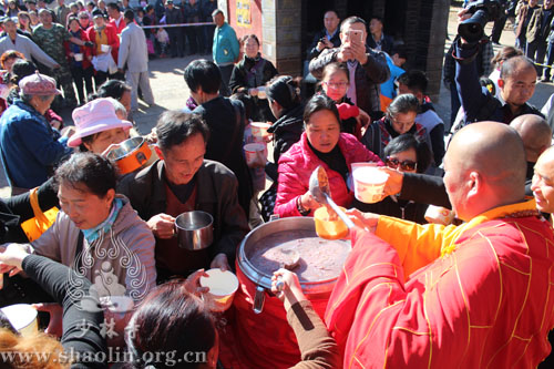 【本网讯】2015年1月27日,是中国的传统节日“腊八节”,也是佛祖成道日。少林寺下院——云南昆明少林寺举行了隆重的施粥活动。本次施粥活动现场设在山门前。
