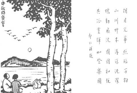 朗月光华, 照临万物。 山川草木, 清凉纯洁。 蠕动飞沉, 团luán(该字为内外结构,外为口,内为栾)和悦。 共浴灵辉, 如登乐国。 即仁补题