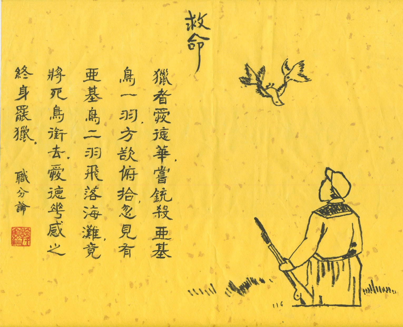 80岁赵老居士书法临摹作品——护生画集其五