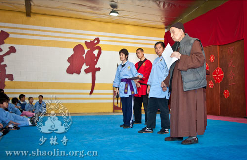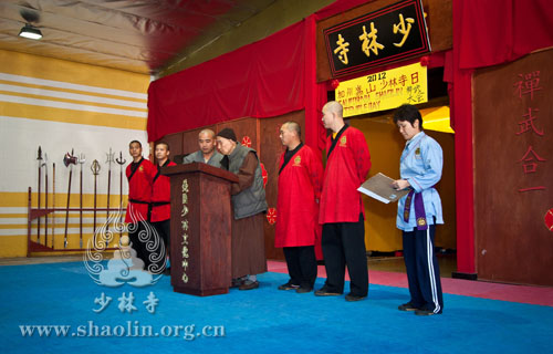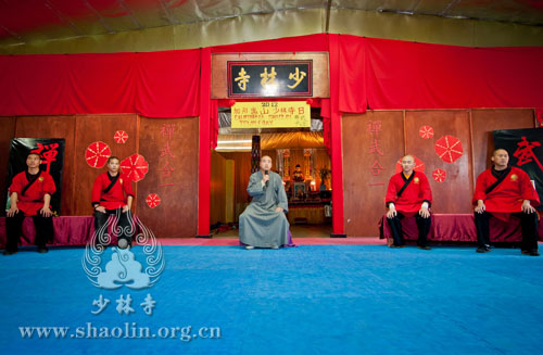 The subject of it was mainly about “Talks on integration of Chan and Kung Fu”. Shi Yanli delivered a speech on “The spiritual integration of Chan and Kung Fu”. He said: “Chan is a way to think deeply to find the internal brightness and perception, and Kung Fu is the act to purify your mind and behave nobly. Shaolin Quan (related to Kung Fu), which exerts modest and gentle attitude, merges the secret of Chan and Buddhism theory together. One can keep fit by Kung Fu and get the inner peace by Chan. The attainment to integrate Chan and Kung Fu together is followed to maintain thinking while being still and to keep imperturbable in critical situations. The people in attendance got the further and deeper understanding of Chan and Kung Fu after watching the demonstration given by students from American Shaolin Culture Center.