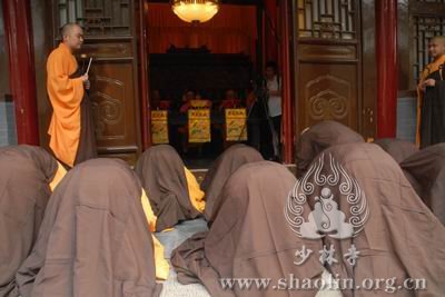 【本网讯】2007年6月4日(佛历二五五一年四月十九日),上午通白二师,请戒开导;下午,新戒们礼戒忏悔 ;晚上,羯摩阿阇黎传印长老主持新戒审戒忏悔。