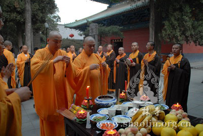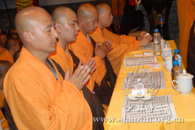 『本网讯』2007年6月7日(佛历二五五一年四月二十二),上午,新戒沙弥在西方圣人殿忏摩。10时许,惟贤长老敬设罗汉斋一堂,妙安长老敬设上堂大斋一堂;新戒沙弥延耘、妙固、源畅、延聚、妙田、源忍敬设上堂大斋一堂;广州市护法居士设上堂大斋一堂;卢房洪居士敬设罗汉斋一堂供佛及僧,由第一尊证绍云法师主持。下午,少林寺首座印松法师为新戒开示。随后打普佛一场。晚上,由开堂和尚圣修长老任座主,领四众弟子放焰口。