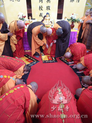 『本网讯』2007年6月9日(佛历二五五一年四月二十四), 少林寺传授三坛大戒法会授比丘戒。