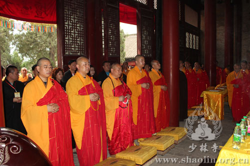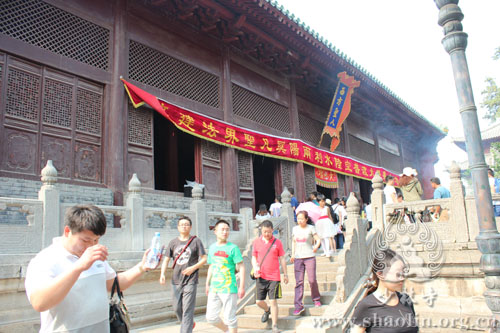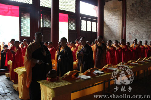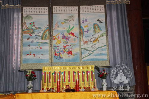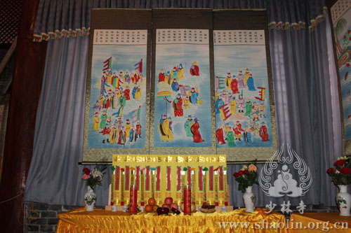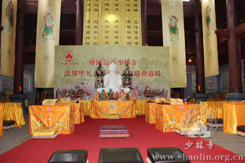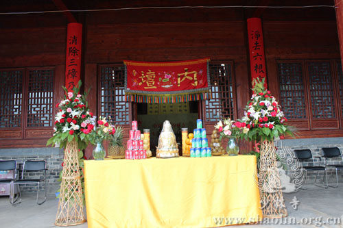 【本网讯】2014年6月1日,少林寺水陆法会进入第二天,外坛法事活动有序进行。此次水陆法会分设内外二坛,内坛现今正在布置之中,将于次日凌晨两点半开始法事活动。外坛坛口包括:大坛、华严坛、楞严坛、诸经坛、法华坛、净土坛。