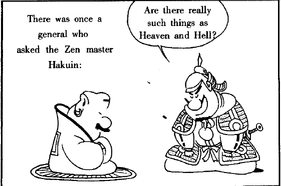 There was once a general who asked the Zen master Hakuin:"Are there really such things as Heaven and Hell?"