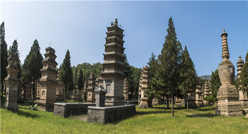 少林寺西面的山脚下,有一块很大的坟茔,坟茔中建立了许多和尚墓塔。和尚称这个地方为“西老坟”或“塔林”。